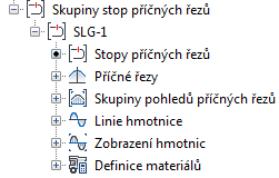 slouží k přístupu ke stopám příčných řezů, příčným řezům, zobrazením příčných řezů, liniím hmotnic, zobrazením linií hmotnic a definic materiálů ve výkresu.