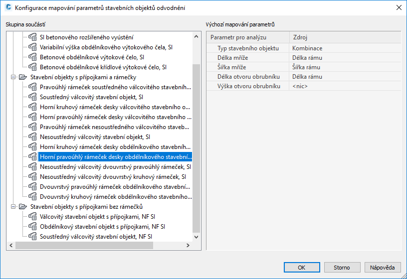 Další informace naleznete v části Mapování parametrů stavebních objektů odvodnění pro analýzu gravitační sítě.