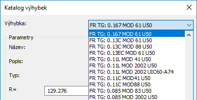 Při vytváření hrany železničního nástupiště můžete jako použitý soubor pravidel návrhu vybrat soubor France_Metric.json nebo Germany_Metric.json. Další informace naleznete v části Dialog Vytvořit/upravit hranu nástupiště.