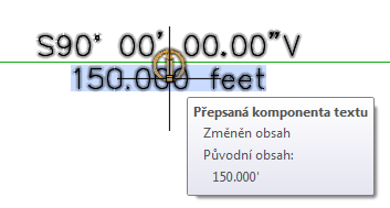 Změněn obsah: Udává, že se změnil obsah popisku nebo formát i obsah popisku. V následujícím obrázku byl symbol stopy (') změněn na text „stopy“.