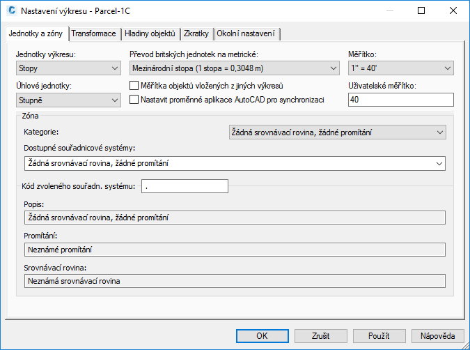 Dalším důležitým nastavením je možnost Nezávislá hladina Zap. Pokud chcete mít kontrolu nad viditelností objektů zapínáním a vypínáním hladin, musí být nastavena možnost Ne.
