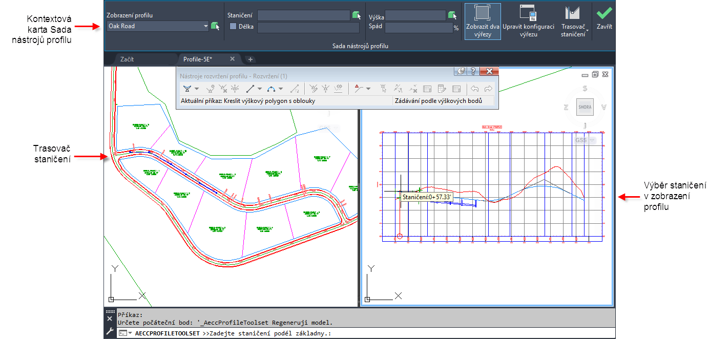 a vybrat staničení v pohledu půdorysu nebo zobrazení profilu.