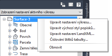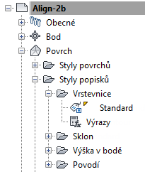 Upravte nastavení popisku na úrovni Výkres, na úrovni objektu (například Povrch) a na úrovni popisek-styl-typ (například Vrstevnice)