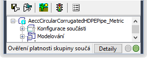 Při úspěšném dokončení těchto postupů dojde k ověření platnosti součásti a na stavovém řádku se zobrazí hlášení, zda bylo ověření platnosti součásti úspěšné.