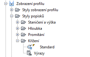 Objekty křížení používají styly popisků křížení zobrazení profilu.