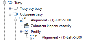 Odsazené trasy jsou přidávány do kolekce Odsazené trasy v Prospektoru. Odsazené profily jsou vytvářeny v kolekci Profily uvnitř pojmenovaných kolekcí odsazených tras.
