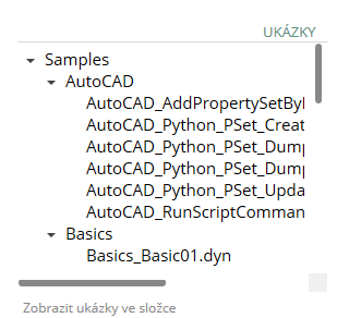 Na úvodní stránce aplikace Dynamo jsou tyto ukázky vypsány v části Ukázky: