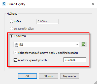 Poznámka: Pokud ve výkresu nejsou žádné povrchy, možnost Z povrchu není k dispozici.