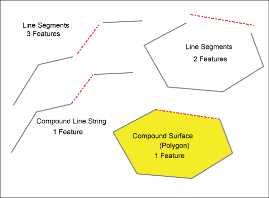 Compounds are used for polygon or line string objects where particular line segments can have different attributes. Therefore a compound represents a group of line segments as one object. For example, several child line segments are combined as a parent polyline or several child line segments are combined as parent polygon.