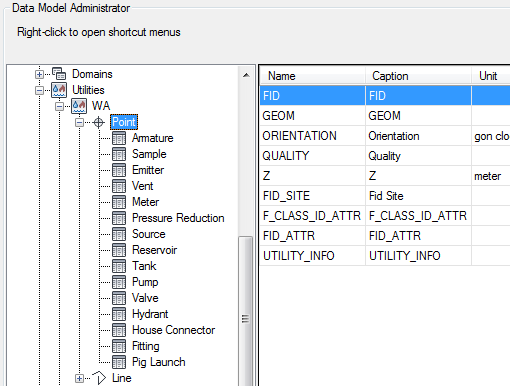Example: In the Water application, the utility node feature class has a multi-relation to all point attribute feature classes, such as armature, emitter, vents, meters and so on. The utility edge feature class has a relation to the line attribute feature class Pipe.