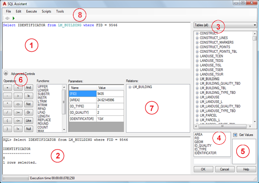 The SQL Assistant dialog box consists of the following components.
