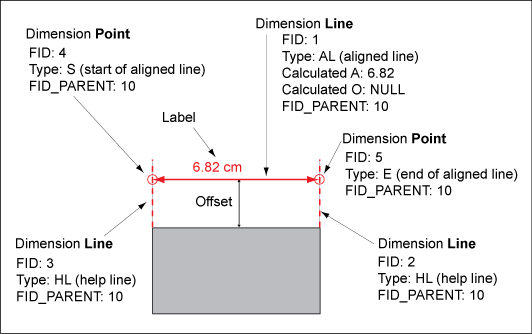 There are several types of aligned dimensioning. Depending on the dimensioning type, the system uses the LINE_TYPE attribute and the POINT_TYPE attribute to distinguish the points and lines. In the display models, you use these attributes to stylize the dimensioning layers.