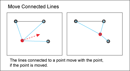 The MoveConnectedLines rule group moves lines connected to a point when the point is moved, such that the line and the point stay connected.