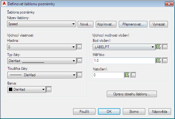 V pravé dolní části dialogu klikněte na tlačítko Úpravy obsahu šablony.