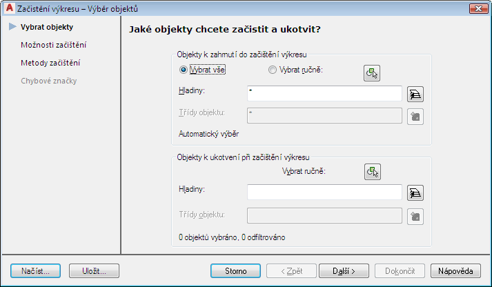 3. V dialogu Začistění výkresu – Výběr objektů proveďte tyto úkony: