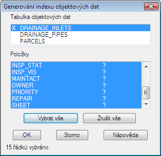 Vytvoří se indexy. Při práci s výkresy pravidelným opakováním tohoto postupu aktualizujte a znovu vytvářejte indexy.