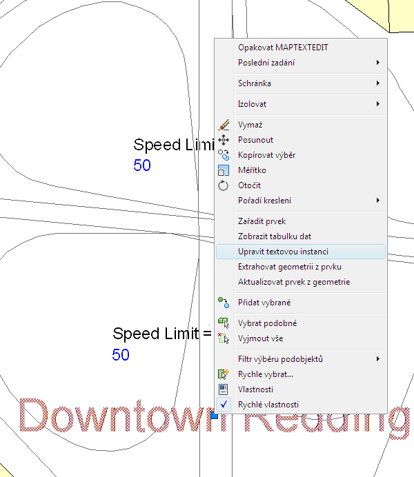 Klikněte na instanci textu „Downtown Redding“, klikněte pravým tlačítkem a klikněte na příkaz Upravit instanci textu.