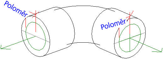 Rodina kolene potrubí, jehož úhel je řízen referenční čarou.