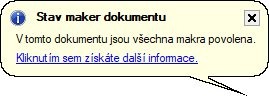 | Nastavení bezpečnosti maker | Stavová ikona | Upozornění při otevření |