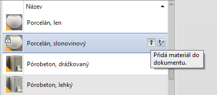 Chcete-li přidat materiál do aktuálního projektu, nejprve materiál najděte v existující knihovně a poté použijte jednu z těchto metod: