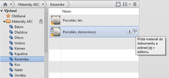 1. V jednom z následujících umístění v Prohlížeči materiálů vyberte materiál: