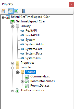 Mimo prostředí IDE použijte k přechodu do instalačních složek aplikace Revit nástroj Průzkumník Windows a přejděte do složky AppHookup. V tomto umístění byly vytvořeny odpovídající podsložky \Samples\Rooms.