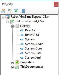 V tomto příkladu obsahuje aktualizovaný nástroj Project Explorer integrovaného vývojového prostředí pro GetTimeElapsed_CSharp následující položky: