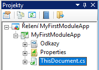 - Byl identifikován prostor názvů modulu (MacroAppCS na obrázku výše).