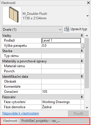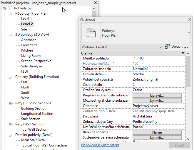 Poznámka: Uvedená ukotvitelná okna jsou přirozenou součástí aplikace Revit, ale mohou být také použita v aplikacích třetích stran.