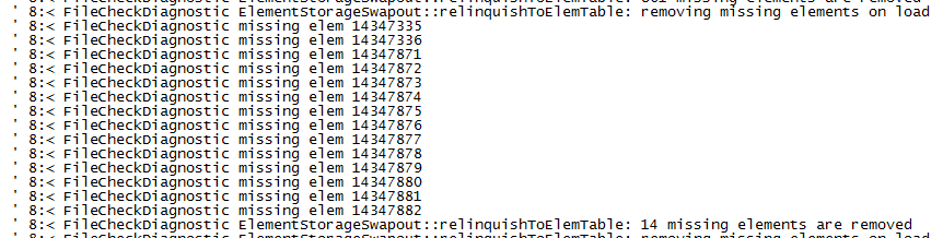 - Pomocí nástrojů pro vyhledávání v textovém editoru vyhledejte informace o chybějících prvcích pomocí řetězce missing elem. Vyhledejte uvedená osmimístná ID prvků a zkopírujte je do prázdného textového souboru k budoucímu použití.