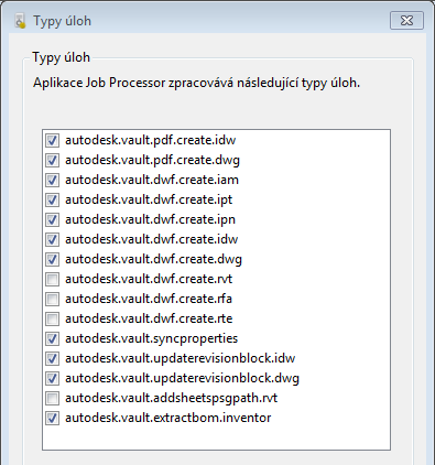 Chcete-li zobrazit typy úloh, které procesor úloh zpracovává, přejděte do dialogu Typy úloh.