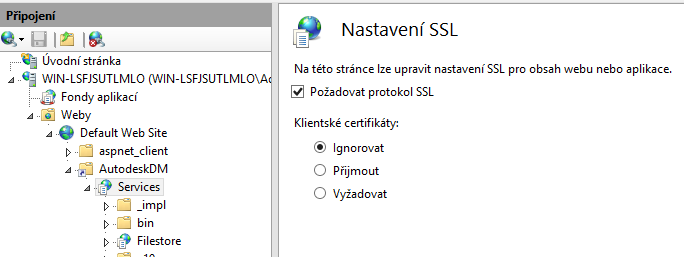 2. Nastavení protokolu SSL ve službě IIS