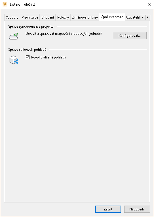 Správci mohou povolit, zakázat a spravovat funkce Sdílené pohledy a Synchronizace projektu.