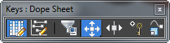 Der Werkzeugkasten Keys für das Dope-Sheet enthält Filter- und weitere Steuerelemente für die Anzeige sowie Werkzeuge für die Transformation von Keys und deren anderweitige Bearbeitung.