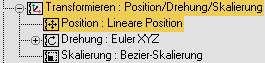Rollout Controller zuweisen auf die Positionsspur im Listenfenster. Das animierte Objekt bewegt sich nun mechanisch.