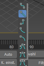 Die Kurveninterpolationen von Frame 20 bis 30 sind gerade Linien, da die Tangenten der Keys auf "Linear" gesetzt sind.