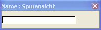Der Werkzeugkasten Name ist im Normalfall mit den anderen Werkzeugkästen am oberen Rand der Benutzeroberfläche Spuransicht fixiert. Wenn er nicht angezeigt wird, folgen Sie dem oben in diesem Thema angegebenen Pfad. Zum Umbenennen des aktiven Fensters Spuransicht bearbeiten Sie das Feld in diesem Werkzeugkasten.