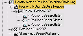 Anmerkung: Sie können das Dialogfeld Motion Capture öffnen, indem Sie in der Liste Controller auf die Spur Position klicken, dann mit der rechten Maustaste klicken und anschließend Eigenschaften auswählen.