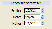 Mit diesen Optionen stellen Sie Breite, Tiefe und Höhe des Vertreterobjekts ein. Außerdem können Sie hier bei der Erstellung des Vertreters diese Werte ablesen.