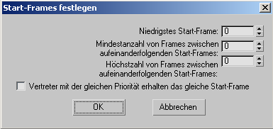 Weist den ausgewählten Vertretern die Start-Frame-Werte anhand der Einstellungen im Dialogfeld und der Prioritätsfolge zu und schließt das Dialogfeld.