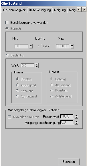 Skaliert die Animation des Clips abhängig von der Beschleunigung.