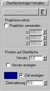 Wenn nur eine dieser Einstellungen ungleich 0 ist, wird der Projektionsvektor an der von Null verschiedenen Achse ausgerichtet. Wenn mehrere Einstellungen ungleich 0 sind, erhalten Sie gewinkelte Flächen für das Oberflächenfolge-Verhalten. Wenn Sie z. B. eine virtuelle Ebene erstellen möchten, die sich um 45 Grad im Uhrzeigersinn um die Y-Weltachse dreht, legen Sie X=Z=1 und Y=0 fest. Sie können außerdem für alle drei Achsen 0 festlegen. Auf diese Weise legen Sie keinen Vektor fest und deaktivieren "Projektion verwenden".