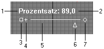 Bei einem Minimum von 0,0 und einem Maximum von 100,0 kann der Wert des Schiebereglers als Prozentzahl dargestellt werden.