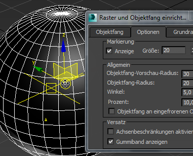 Durch Ziehen des Kreissymbols im Verschiebe-Gizmo wird Objektfang verwendet Achsenbeschränkungen vorübergehend ausgeschaltet, sodass ein freies Verschieben möglich ist.