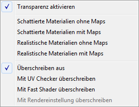 - Zeigt ein Untermenü mit Optionen für die Materialanzeige an.