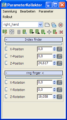 Der Werkzeugkasten des Parameterkollektors enthält Schaltflächen für die am häufigsten gebrauchten Funktionen.