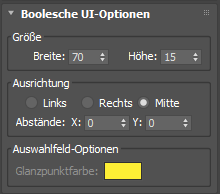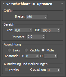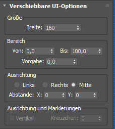 Rollout mit den UI-Optionen für Winkel/Gleitkommazahl/Ganzzahl/Prozent/Welteinheiten: Schieberegler