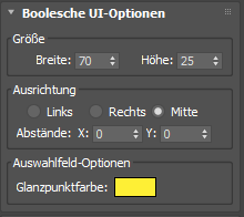 Dies sind die Optionen für ein Standard-Kontrollkästchen in 3ds Max, das der Benutzer aktivieren bzw. deaktivieren kann, indem er mit der Maus darauf klickt.