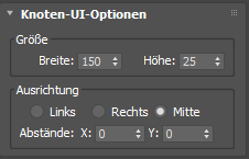 Ein Knoten ist ein beliebiges Objekt in der 3ds Max-Szene. Das Element "Knoten-UI" erstellt eine Schaltfläche, über die der Benutzer durch Klicken einen anderen Szenenknoten auswählen kann als den, mit dem das Attribut verknüpft ist. Nachdem der Knoten ausgewählt ist, erscheint sein Name auf der Schaltfläche.