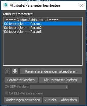 - Markieren Sie im Dialogfeld "Attribute/Parameter bearbeiten" den zu bearbeitenden Parameter.